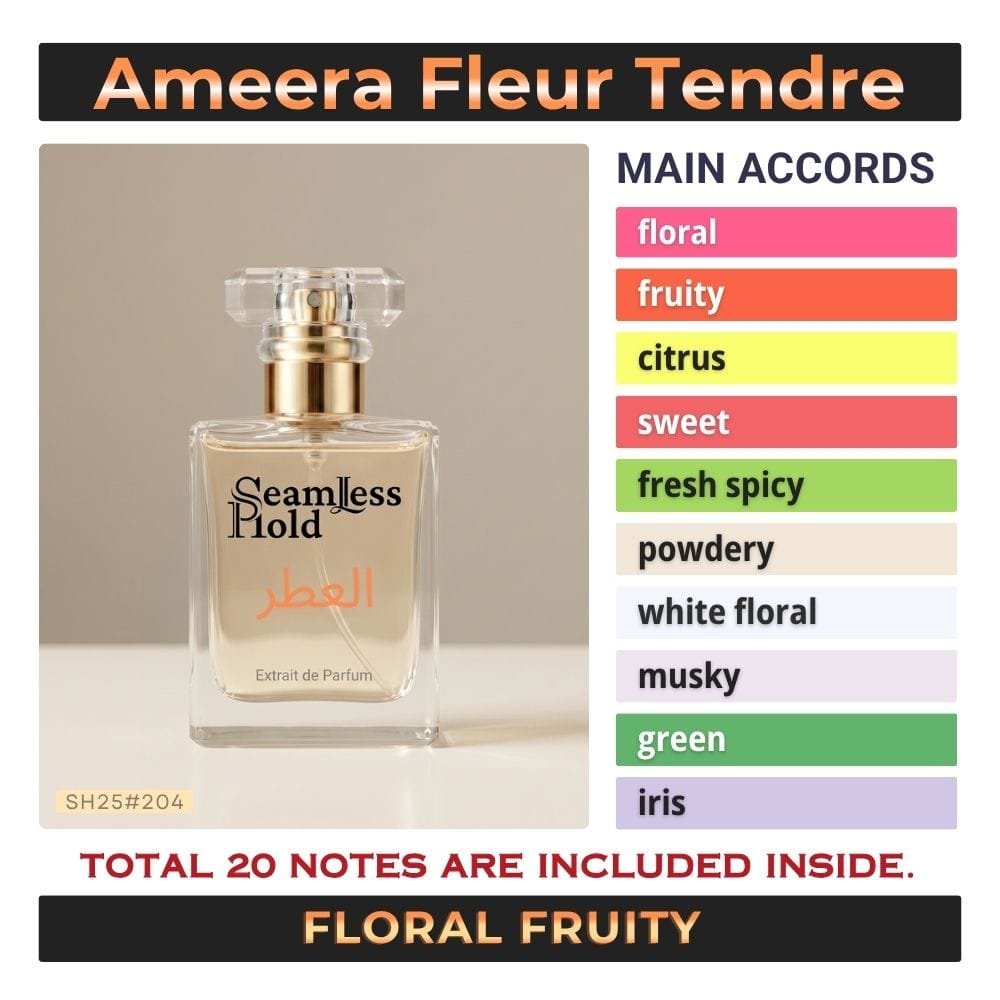 Crafted with our Oil-Based Formula Fragrance, this scent delivers Very Long-Lasting wear with a smooth, luxurious finish on skin. As part of our Dubai-Inspired Custom Blends, Ameera Fleur Tendre brings Luxury Quality, a Formula, and an effortlessly elevated vibe for women who want a fragrance that feels fresh, graceful, and unforgettable.